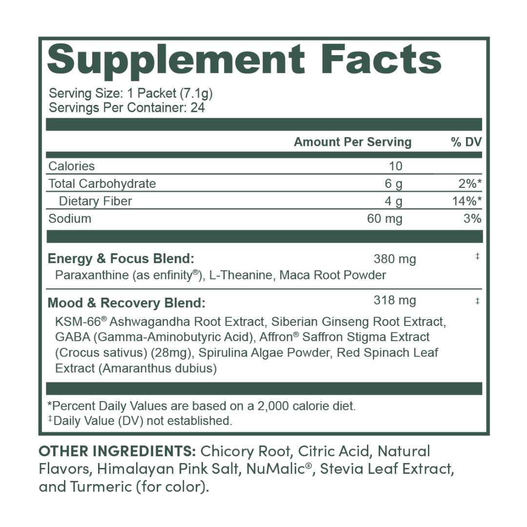 Better energy, sharper mind, superior mood, and advanced recovery from a caffeine-free, daily wellness blend of ancient superfoods and cutting-edge nootropics.